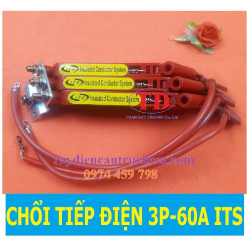 Chổi tiếp điện ITS 3P-60A là một sản phẩm chất lượng cao, được thiết kế đặc biệt để sử dụng cho cẩu trục. Chổi tiếp điện ITS 3P-60A là bộ chổi lấy điện có 3 lá than tiếp xúc với 3 rảnh đồng của ray điện tương ứng và kích thước của lá than chịu được 60 ampe.